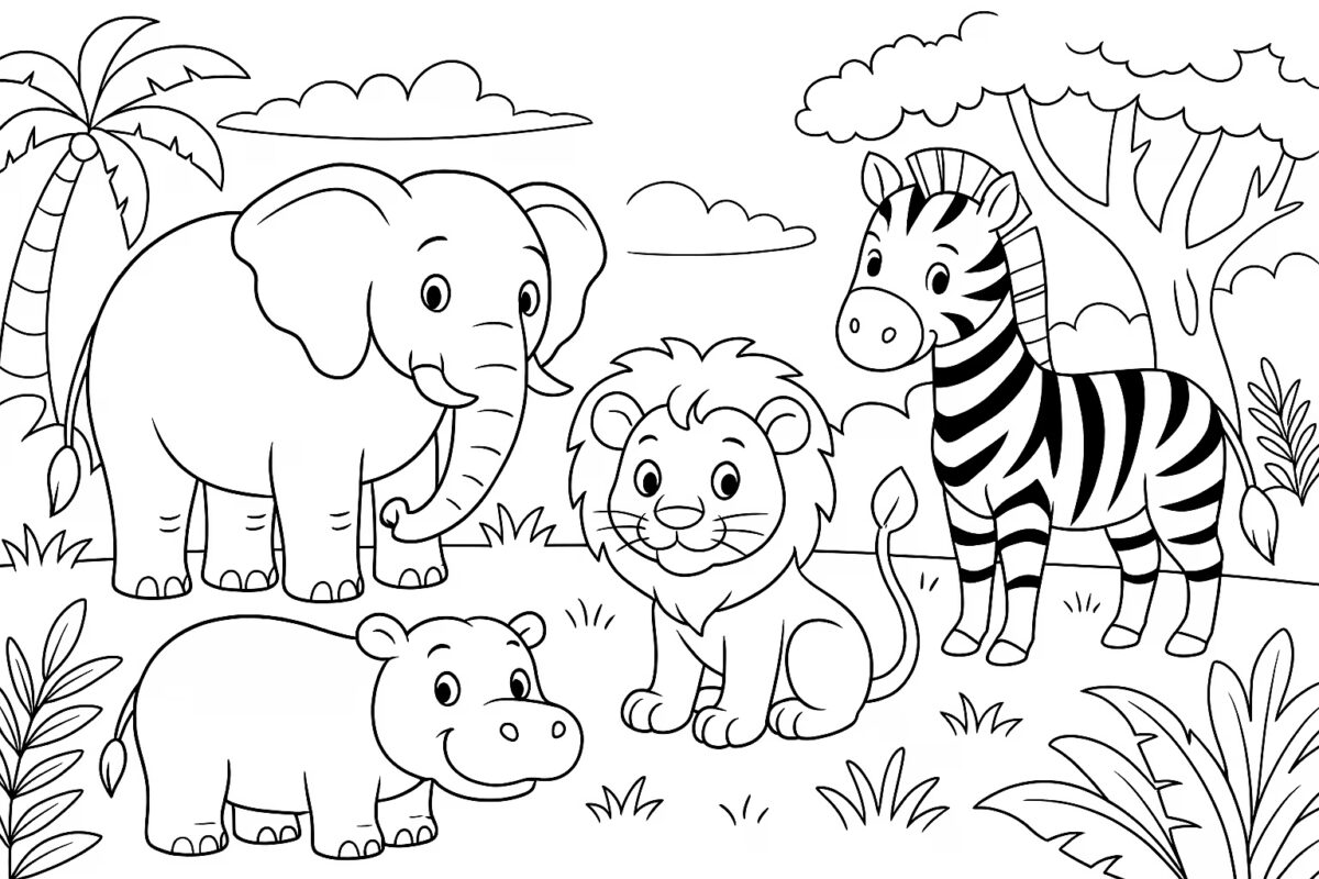 These free safari coloring pages feature five beloved savanna animals — a roaring lion, a towering giraffe, a marching elephant, a striped zebra, and a playful monkey — drawn with clean, bold outlines that are just right for little hands. Designed with ages 3 to 10 in mind, each page is detailed enough to hold an older child’s attention while staying simple enough for toddlers to fill in with chunky crayons or finger paints.