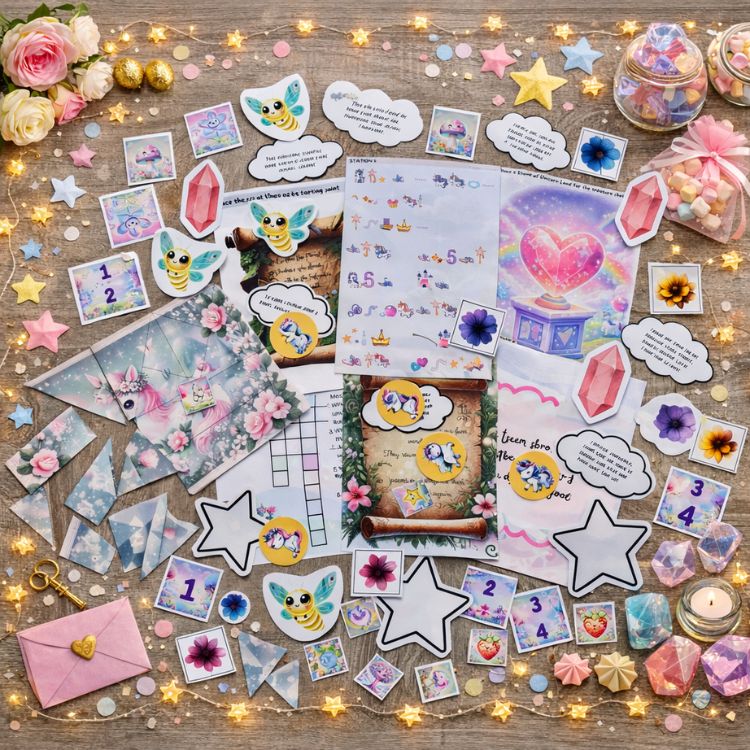 - Extra materials & creative tips: For even more sparkle and fun, we include lots of extras — ideas for glittery decorations, unicorn accessories, or small surprises that make the treasure hunt even more magical.