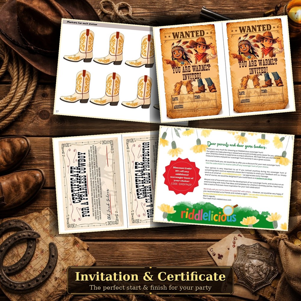 - Invitation cards & Wild West certificates